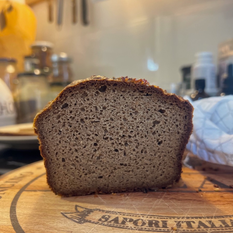 Nie jest ani na drożdżach, ani na zakwasie. Rolę przejmuje łuska babki płesznik i ocet jabłkowy. Chleb jest pewniakiem, nie będzie poruty w rodzinie. Spróbuj jeszcze w tym tygodniu i zaskocz wszystkich!