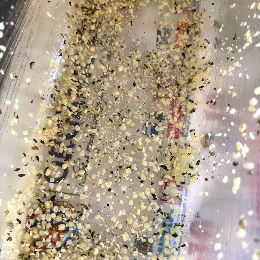 1 łyżkę masła lub oleju kokosowego i 1 łyżkę łusek konopnych.